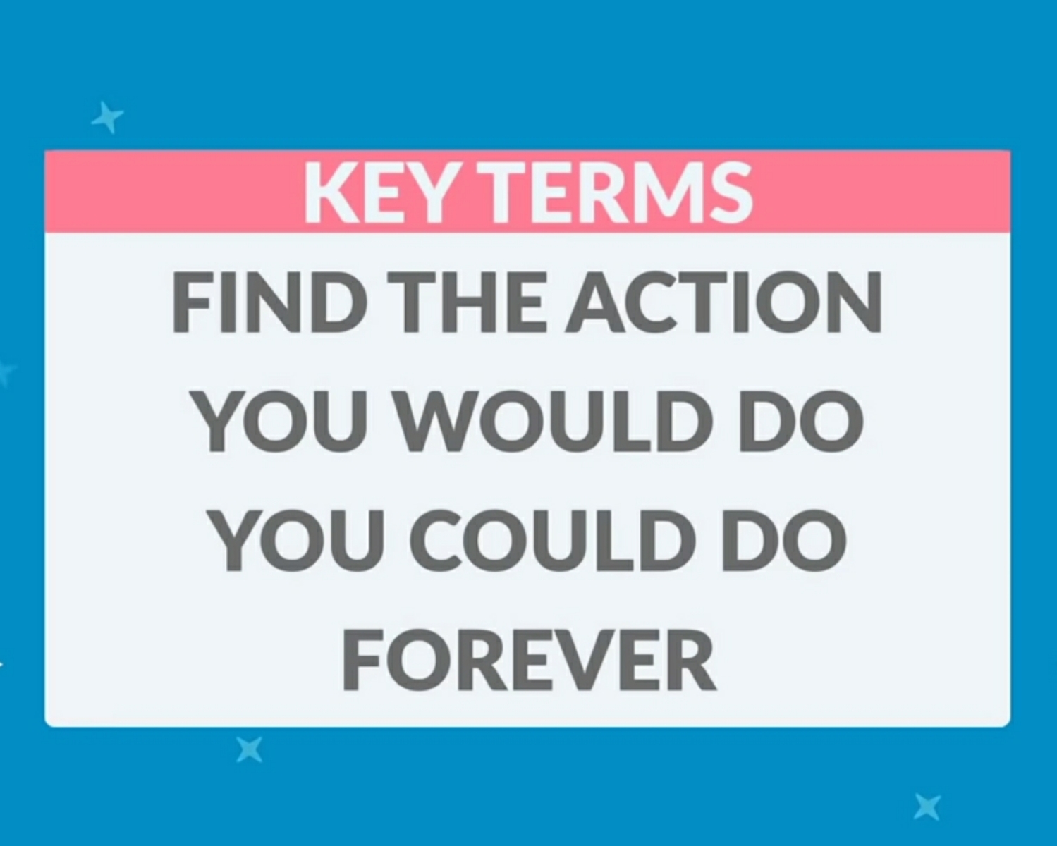 Find the action that you would, and could repeat forever.